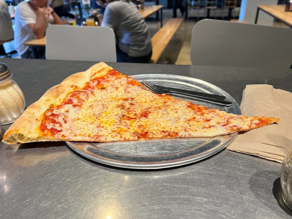 This isn’t some gimmick either. The crust stays crispy, the toppings are generous, and every bite tastes as good as it looks ridiculous. College students and families alike flock here because one slice genuinely feeds multiple people.