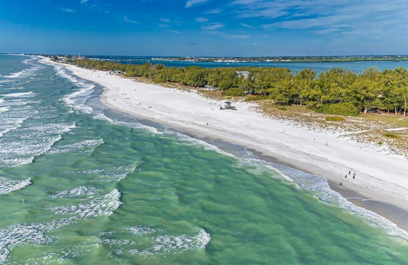 Coquina Beach on Anna Maria Island offers that classic Old Florida charm that’s hard to find these days. Soft white sand meets gentle Gulf water, and tall shady pines line the shore, making it feel extra dreamy. It’s a favorite for families and locals who want a relaxed beach day.