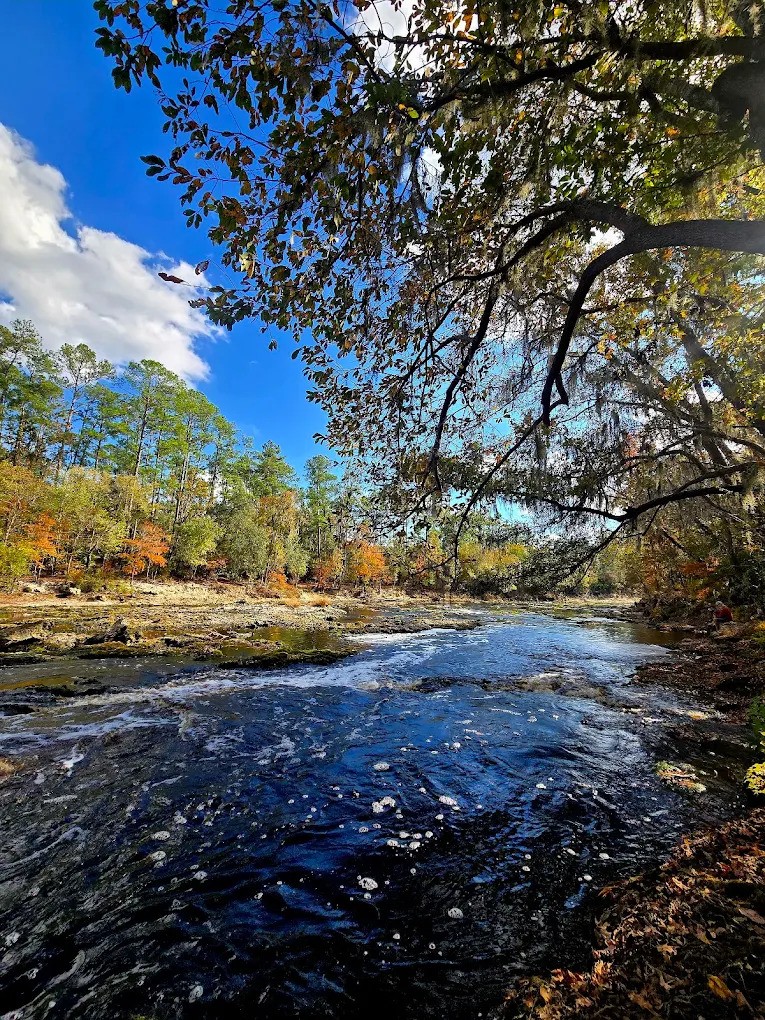 Hiking the bluff trails rewards you with panoramic views of the Suwannee River framed by colorful hardwoods. Adventurous kayakers tackle the Class III rapids while surrounded by nature’s autumn palette overhead.