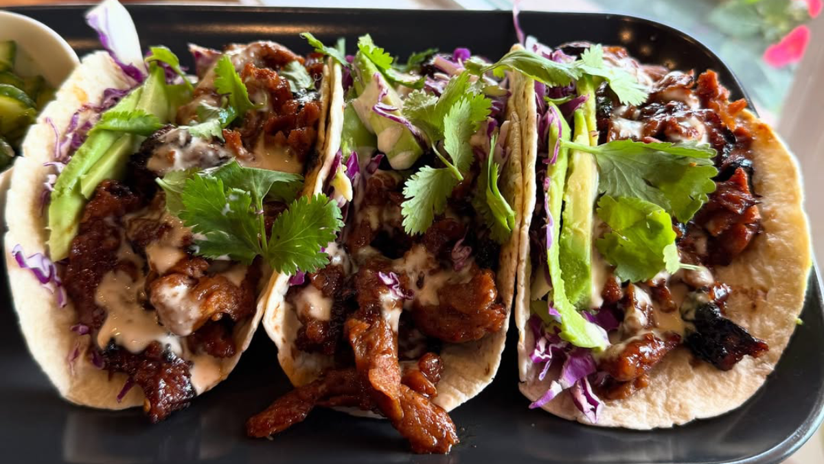 Their tacos stuffed with seasoned vegetables and cashew crema are customer favorites. They also offer bigger plates like enchiladas and burritos that come piled high with beans, rice, and homemade sauces.