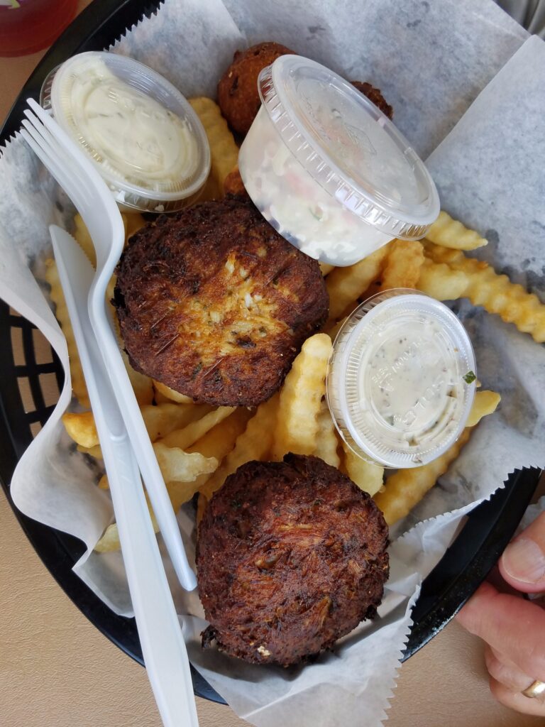 Open daily from 11 AM to 8 PM, this spot combines casual vibes with beautiful scenery. Whether you’re watching fishing boats unload their catch or enjoying the sunset, the harbor views make those famous crab cakes taste even better.
