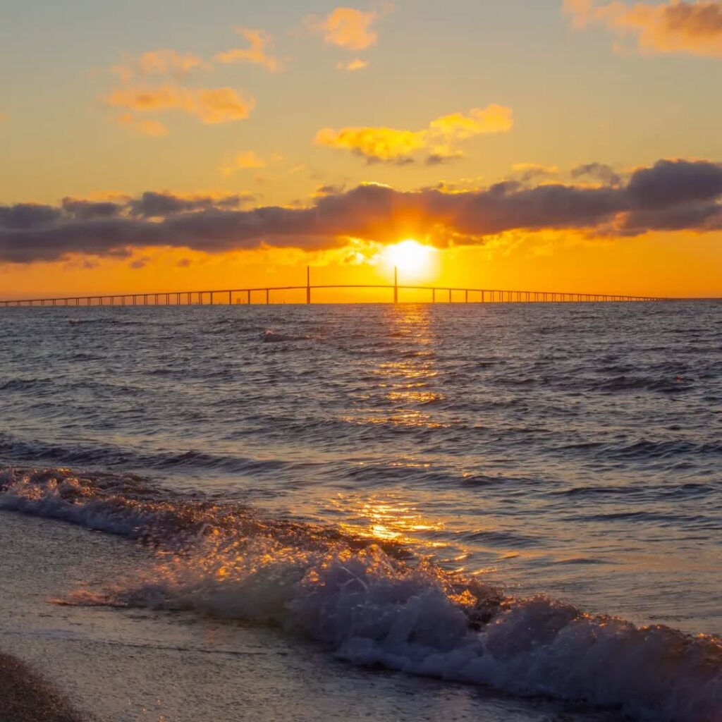 Fort De Soto Park is one of Tampa Bay’s most breathtaking places to watch the sun dip below the horizon. With its powdery white sand, calm Gulf waters, and wide-open shoreline, it offers an unbeatable front-row seat to golden-hour magic.