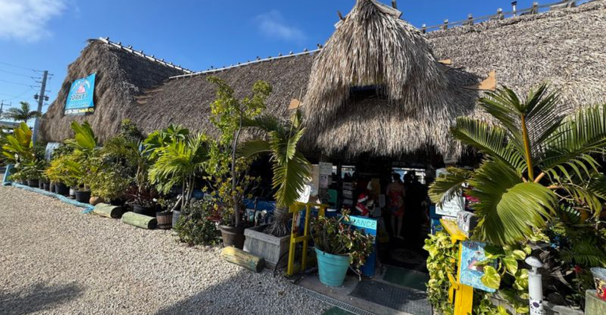Porky’s Bayside sits right at Mile Marker 47.5 on the Overseas Highway, which means you’re eating with your toes practically in the water. The marina view alone makes this spot worth visiting, but the funky vibe and laid-back Keys atmosphere seal the deal.